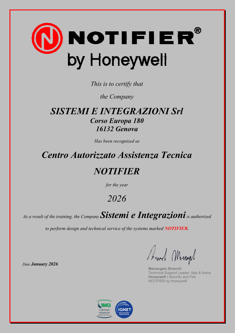 SISTEMI E INTEGRAZIONI SRL è centro autorizzato assistenza tecnica sui sistemi a marchio NOTIFIER per la regione Liguria.